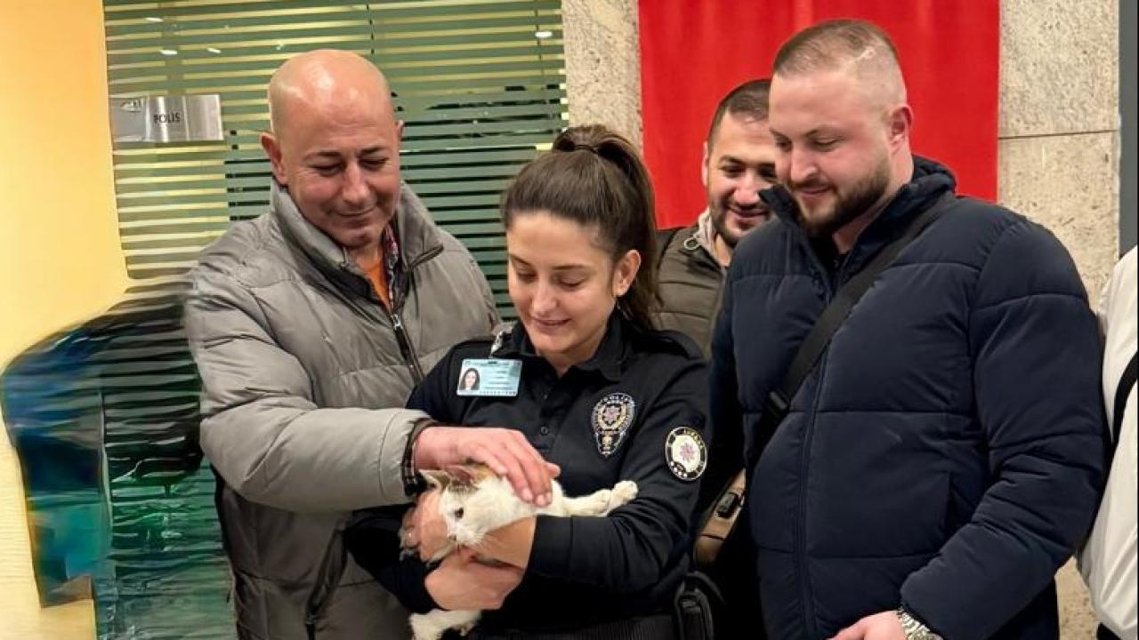 Esenboğa Havalimanı kapalı otoparkında sahibinin araç içerisinde bıraktığı kediyi fark eden vatandaşlar, durumu Havalimanı Koruma Şube Müdürlüğünde görevli polis memurlarına bildirdi.